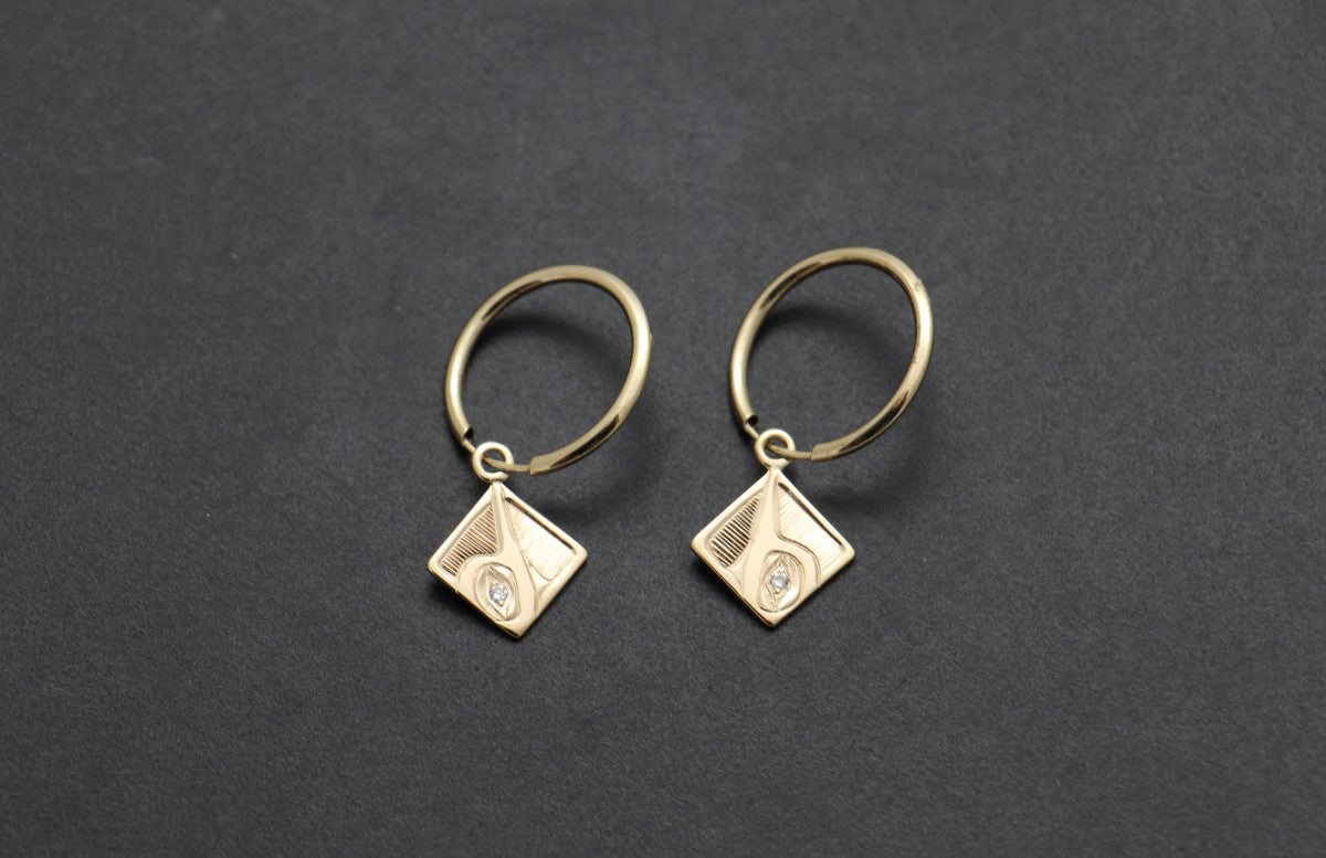 Square Hummingbird Earrings with Diamond